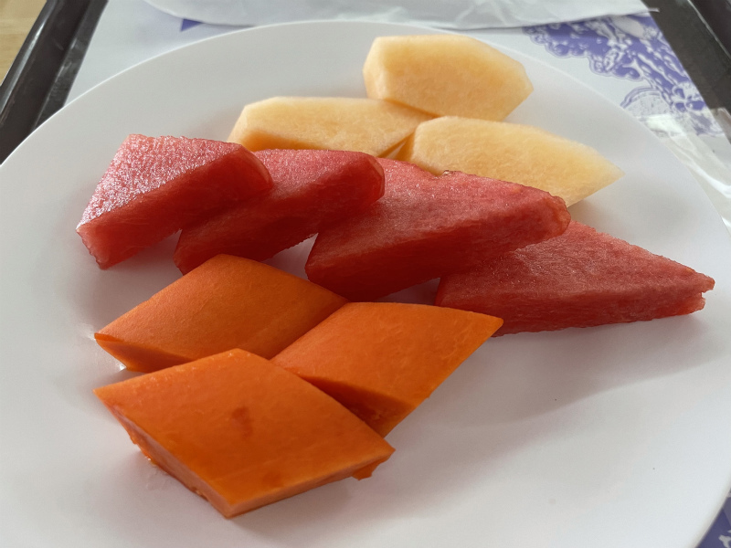 270バーツとか、とんでもないぼったくり値段だったので、食欲もゼロだったから、フルーツの盛り合わせをお願いしました。