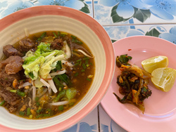 パーパーソイという蒲鉾の様な米麺と牛肉のカオソーイ。