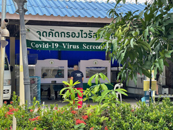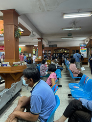 サラピー病院では、駐車場の一角でPCR検査を実施中。別の場所ではワクチン接種もやっていて、結構人が多かったから、久々のガッツリ系マスクを着用。