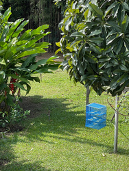背中はカップリングの痕があって、大きな紫の水玉を背中にまとっています。