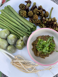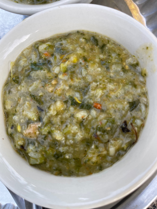 そして今、バーンロムサイの保母さん4名のうち、3名がカレン族なので、カレン族のご飯をいつか作ってね!と前にお願いしたら、特別な山の野菜とスパイシーな野菜のディップ、そして大好きなカレン族のお粥を特別に作ってくれていました。