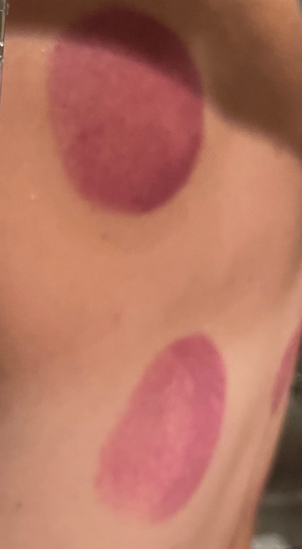 久々にカッピングやったら、とても鮮やかな濃い紫色のドットがたくさん出来ました。
