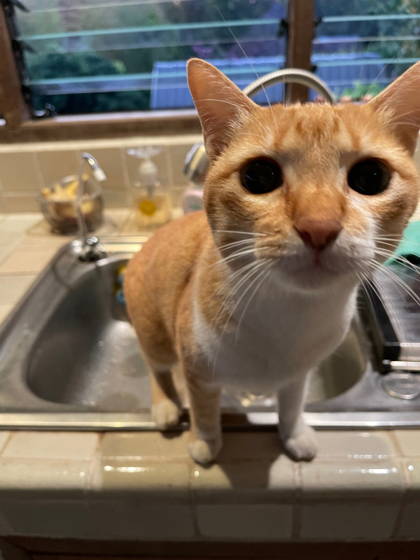 先日、なんと、台所の流し台の中にしていたのです。チンマリと。