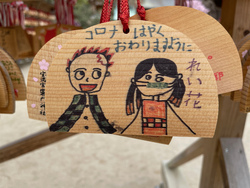 特にそれにあやかった商売を神社でしていないのが好ましいですが、訪れる人は思いっきり『鬼滅の刃』。
