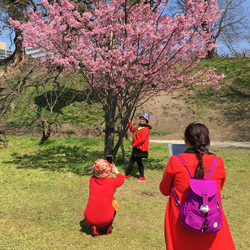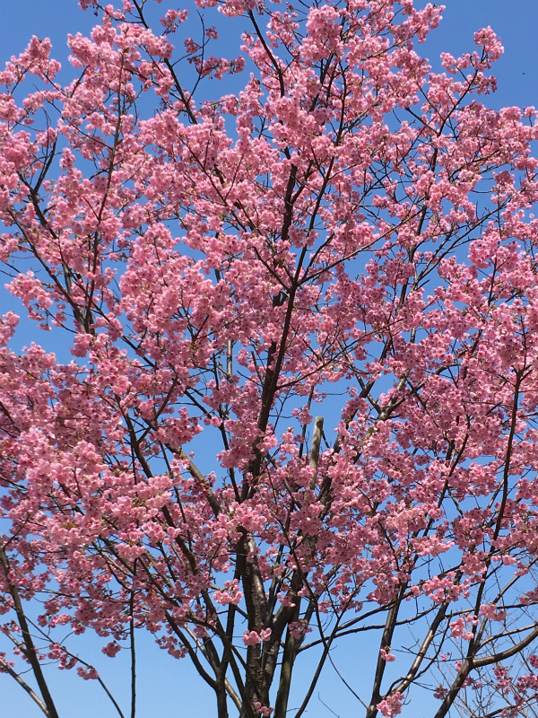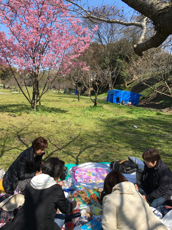従姉のたくさん食べる楽しいお友だち2名も一緒にちょっとだけ早咲きの桜の前で快晴の中お花見しました。
