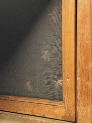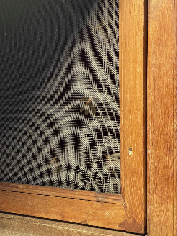 一昨日の朝、4時に目が覚めたので電気スタンドをつけて本を読み始めたら、枕元の網戸にバシバシ音が。 羽虫です。
