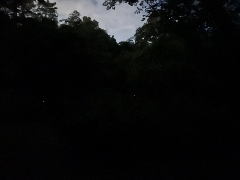 下の写真のゴミのように光っているのが唯一写った蛍です。
