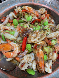 南タイ出身のご主人が作るサトー豆の炒め物。 本格的でとてもとても美味しかったです。