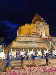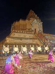 先日、旧市街にあるチェディルアンという有名なお寺で「サオ・インタキン祭り」という大きな仏教行事があり、タイ舞踏を習っている友人が踊りました。日本人ですが、もうタイ人です。とても綺麗です。教えてくれなかったので生踊りは見ることが出来ませんでした。残念。