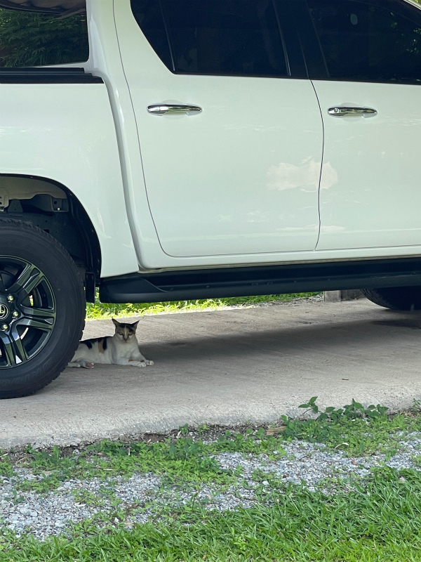 ルーシーも外出中に私の車の下で、涼んでいました。