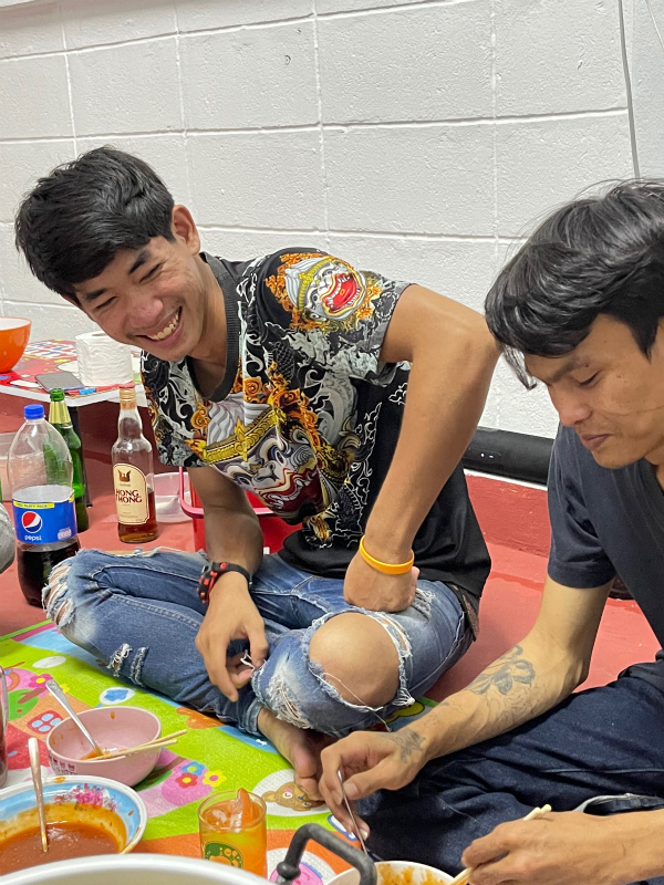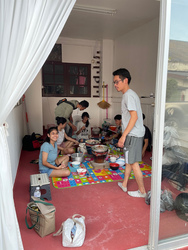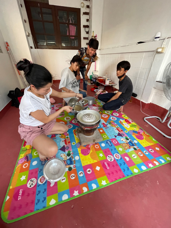 オニギリを作って夜にお邪魔すると、ヌン、オン、パーヌ、ニサー、ゲンが準備を手伝っていました。