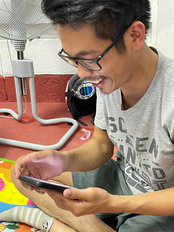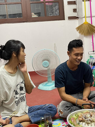 ドアは開けっ放しで、扇風機2つがブンブン。