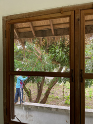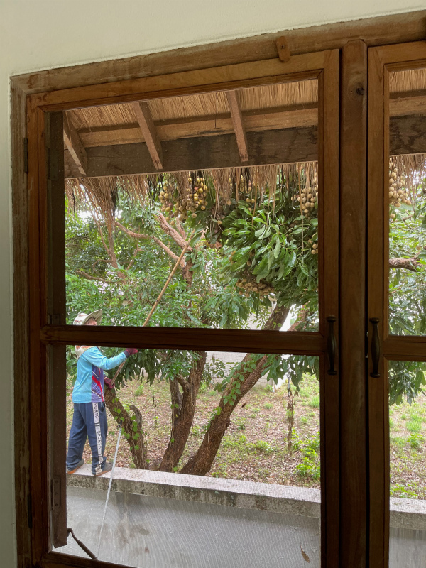 お隣の迫り来るラムヤイを先日、庭師のソムチャイ君に切ってもらいました。