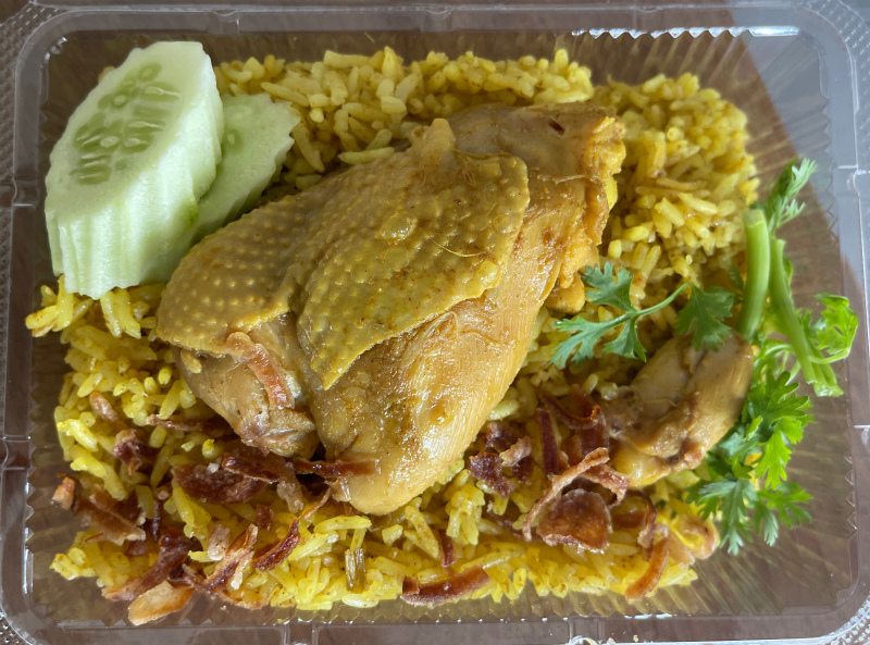 ターメリックや八角などのたくさんのスパイスで炊き込んだご飯や鶏肉は、あまり辛くなくて、