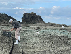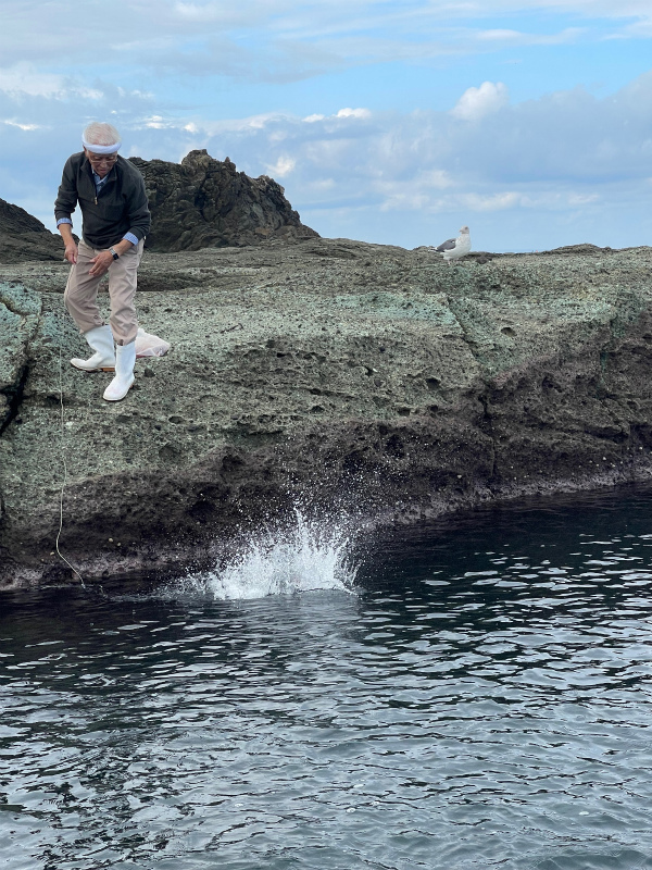 翌朝早くから、おじさんは蛸の仕掛けをしに岩の間へ。