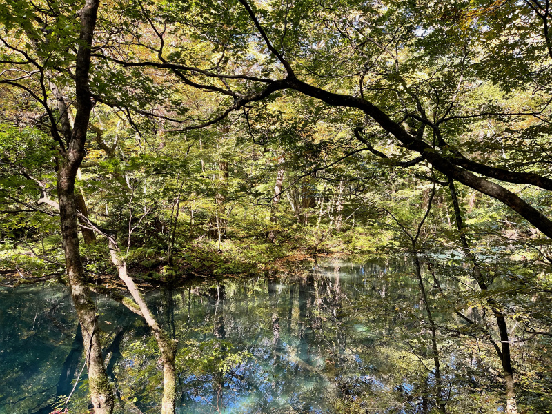 さて、千畳敷の二日目は好天に恵まれ、白神山地の十二湖へ。