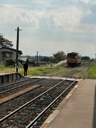 千畳敷から代行バスで五所川原に着き、呑気に観光案内所で地図をもらっていたら、津軽鉄道もうすぐ発車です!といわれ、久々の猛ダッシュ!