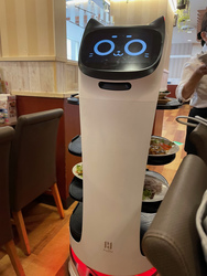 お運び専門。でも配るのは人間。きっともうすぐロボットが全部やるのでしょうね。