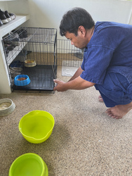 お腹が空いているだけだから本当にかわいそうなのですが、でもお客様に何かあったら大変なのと、他の猫が噛まれてしまい、さらにご飯をたくさん食べているので、誰よりも太って頑丈で喧嘩も強い!