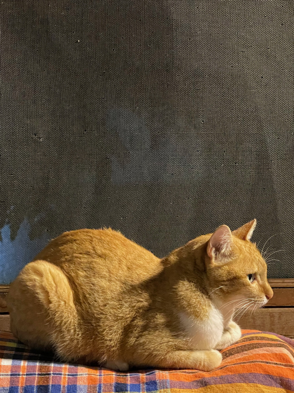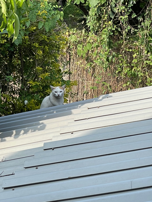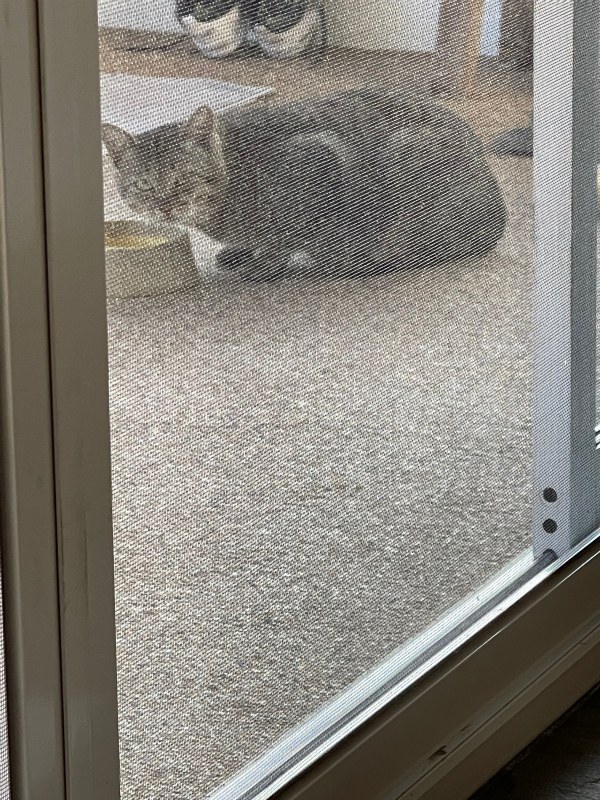 ヨシゾウとキキのために不在中 、私の家のベランダにカリカリを朝夕置いてもらっていたのですが、それを食べるのが外から来たグレーの猫で、さらにその子は他の猫に噛みつき、何匹か怪我をし、ヨシゾウとキキは怖がってご飯を食べに来なくなったとのこと。