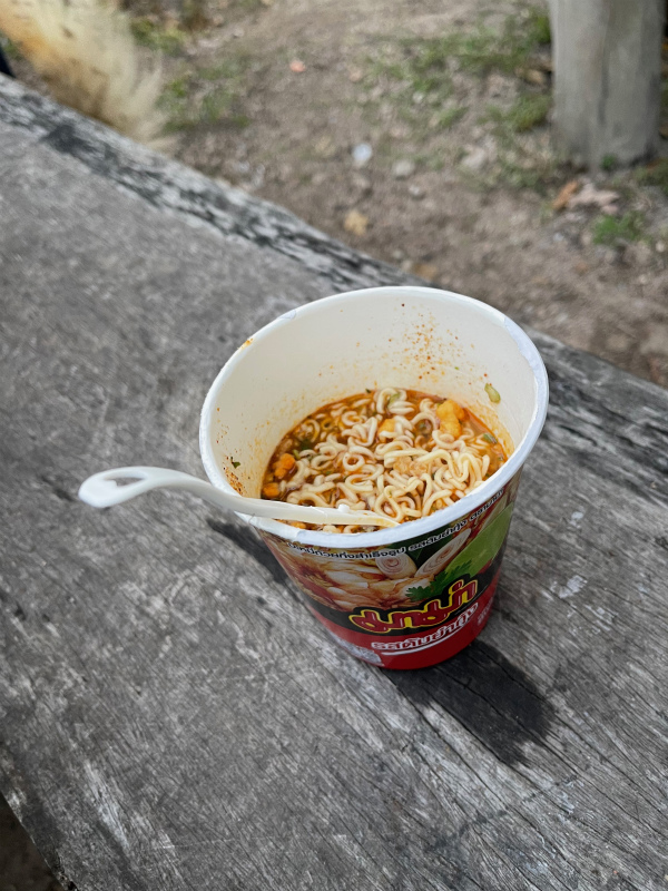 夜ご飯を途中で食べる予算と時間がなく、非常食用カップ麺をお寺で食べ、帰路へ。