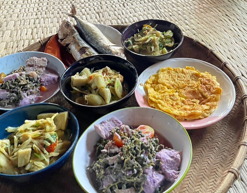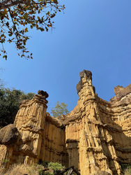 カレン族のチャンシーさんの村で草木染めしたり、ここから車で50分ほどのところにある、メーワン国立公園内のパーチョーという500万年前の地形が残っている場所に行ったり。