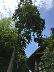 そして日本から戻って来たら、サラーの木から花が突然生えていました。この木は2011年に死んだ母のアレコレが終わった後、チェンマイにまだまだ来たいと言っていたから、母の木ね、と思って植えたものです。縁起の良い木だそうで、横のガンガン成長する竹にグイグイやられつつもこうして元気に育っています。しかしこの木に花が咲くというのは知らなかったのでビックリ!ちょっとシアワセです。