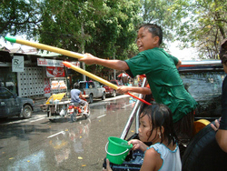 市内では、3年ぶりの水掛け祭りがすでに12日から始まっていたようです。