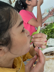 ジャスミンの花を私の首にかけて「長生きしてね」とか「健康に気をつけてね」という言葉をかけてもらい、私からも「楽しく幸せにね」とか「勉強頑張ってね」とか言葉をかけるところまでは一緒。今回はお水は無しで、その代わり一人一人と乾杯しました。