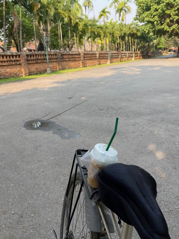 トンクウェン寺まで行って、誰もまだいない中お詣りして、おばちゃんのカフェオレを木陰で飲んで、チェンマイ語のおじいちゃんと全然わからないけどお話しして。
