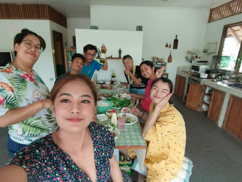ヌン、オン、ゴイ、エム(ゴイの彼氏)、ダーウ、そして今年からホームを出てラチャパット大学の観光学科で勉強するアーパイも。