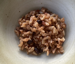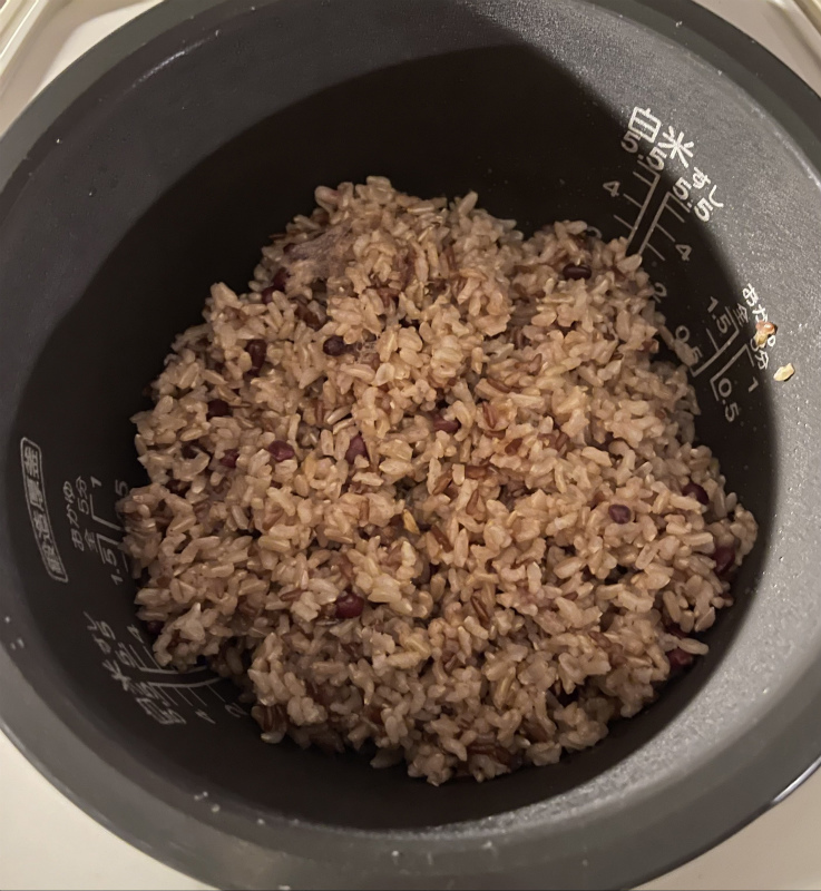 この酵素玄米ご飯は、先月富山の高岡市での昼食時に感動の美味しさだったので、試してみました。高岡のは、長岡式とかいう凝ったものでしたが、私のはお手軽で、玄米と小豆を洗って炊飯器で炊いてそのまま保温するだけ。