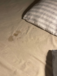 雨を避けて端っこに寝ていたら、ベッドから落ちた!