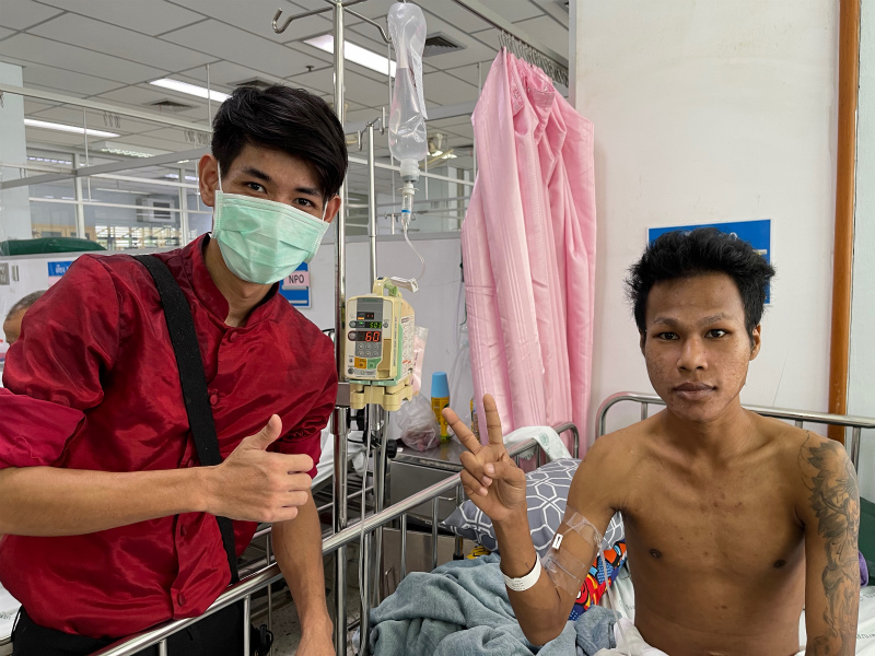 タムはボーイ、パヌー、ペット、ビーなどと連絡取り合っているようで、この日もパヌーが仕事(飲食店で夕方から働いている)の前にお見舞いに来ました。