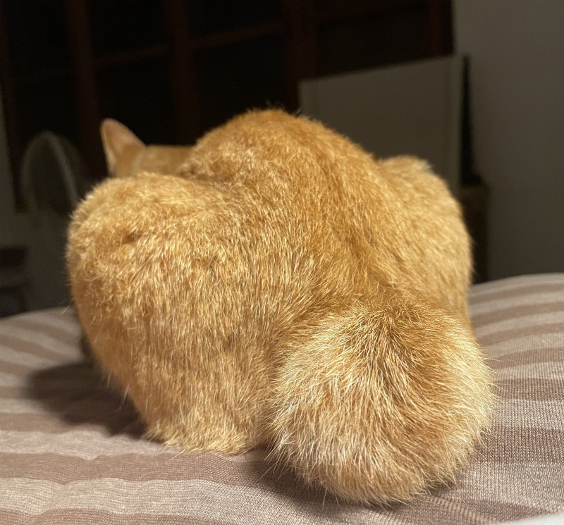 時々夜一緒に寝るのですが、明け方目が冷めたら鼻っ面にキキの丸い尻尾が。
