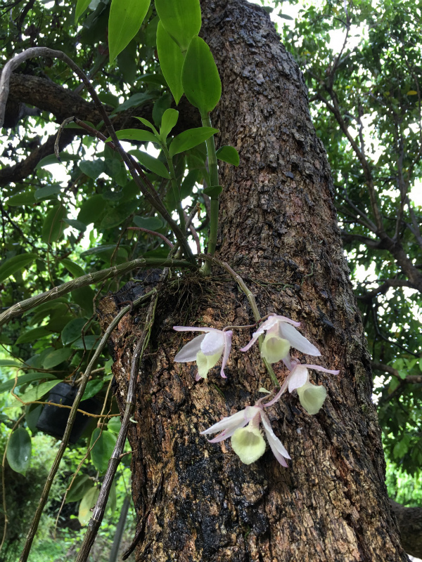 雨だの晴れだのと続いていたからか、ラムヤイの木から突然まったく違う花が咲きました。