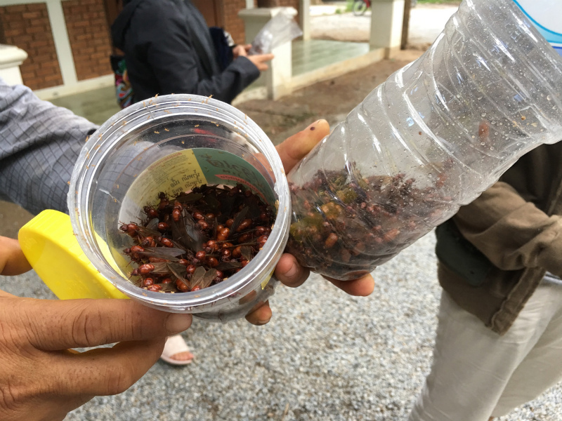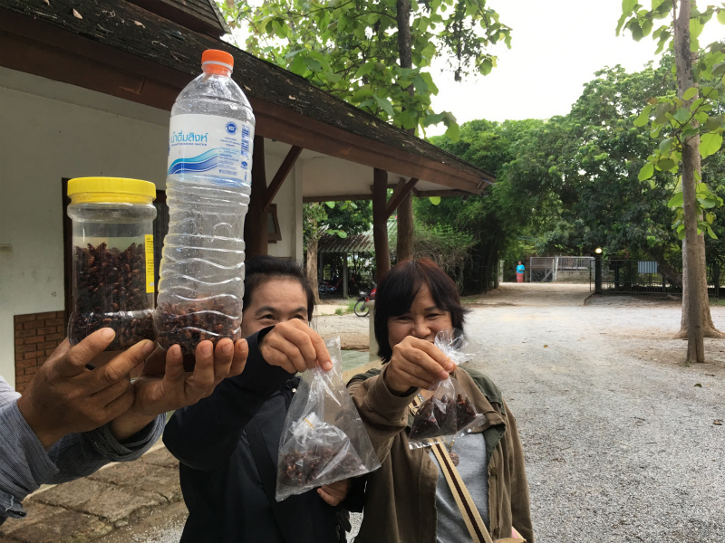 今日はその貴重な日だったらしく、ホシハナや縫製場のスタッフ、大工さんたちも必死に穴を掘って捕っていました。一キロ数千バーツで売れるそうです。でも彼らの目的は食べる事。乾煎りして食べます。そんなに特別美味しくなかった(かつて仕方なくいただいたことがあり)、、、。
