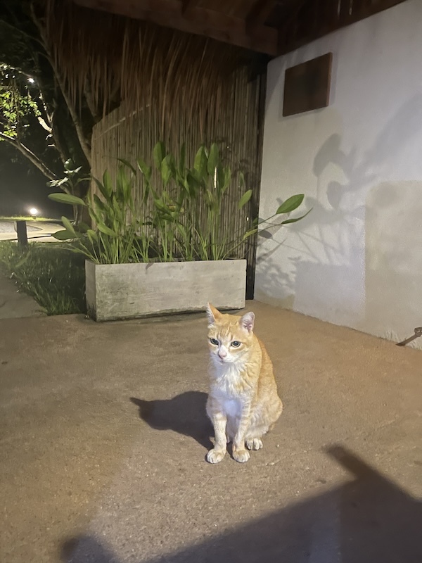 なんだかとっても疲れて真っ暗な中、家に帰ろうとしたら、タイラメ(たらちゃん)がレセプションの所に出てきてくれました。優しい、、。