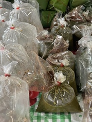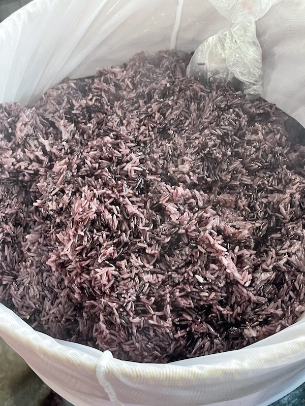 さらに乾季のお楽しみのヤムパック(発酵野菜のナンプリック)が出ていたので、早速黒餅米と一緒に買いました。