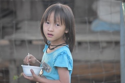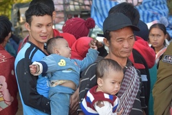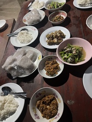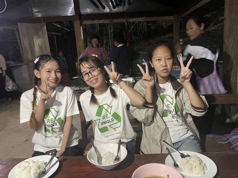 朝、再びカノムジーンを村人へ振る舞い、ドーナッツや支援物資、そしてヒートテックを配って、10時過ぎに出発。