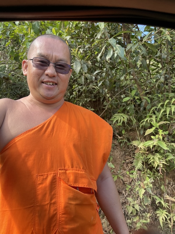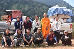 翌朝も村で支援物資を渡し、お昼前には出発し、川べりでお昼を食べ、途中でチャンヤー僧侶チームとお別れをし、私たちは帰途につきました。