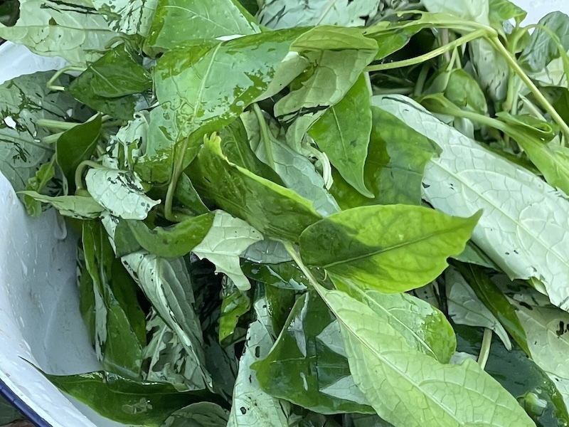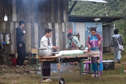 作ったカノムジーンナムニャオのお昼ご飯を村人たちへ振る舞います。