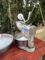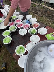 まだ明るいうちに到着したら、先に着いていたチャンヤー僧侶チームがすでにかき氷を村人たちへ振る舞う準備完了。