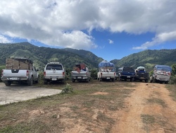 オムゴーイ病院で寄附物資を渡して、オムゴーイのお寺に住むパガヨーのチャンヤー僧侶とお寺のボランティア達と合流し、チャンヤー僧侶とソムチャイ僧侶が時間をかけて調べた、支援の手が行き届かない村に行きます。