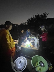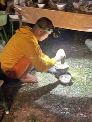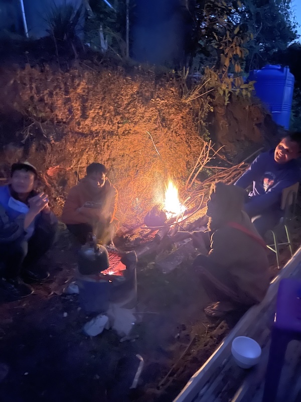 翌日朝4時半には目が覚め、暗闇で着替えて外に出ると、もう僧侶チームが火をおこして朝ごはんの支度を始めています。