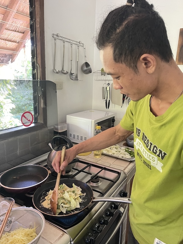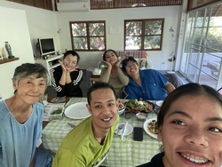 元旦の日は、前々からの約束でゴイ、エム、ダオ、ヌン、スーワイの5人がお好み焼きとソース焼きそばを食べに。