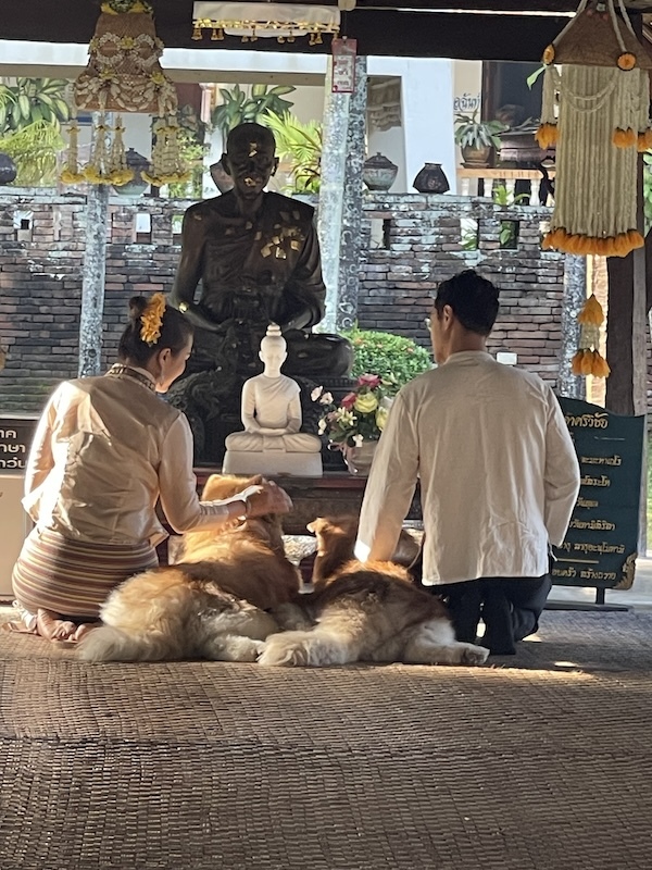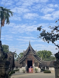 1858年に建てられたこのお寺はランナー建築様式が美しくて、人も少なく落ち着ける場所、、、のはずだったのですが、ここ最近お寺の前に貸衣装屋が出来て、そこでタイの民族衣装を着て、こってり化粧をしてこのお寺で撮影するのが流行ってしまい、下手すると大勢の観光客の撮影会ですごいことになっているらしいのです。。。。