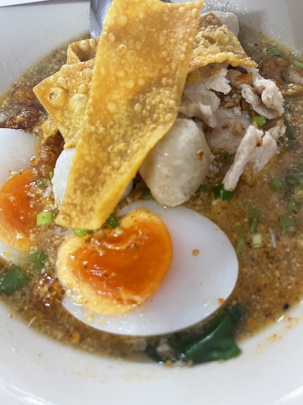 日本に帰国する前に食べたいもののベスト3に入るのが、プーケットという老舗のトムヤムラーメン。昨日食べて来ました。大盛りでゆで卵のせ。