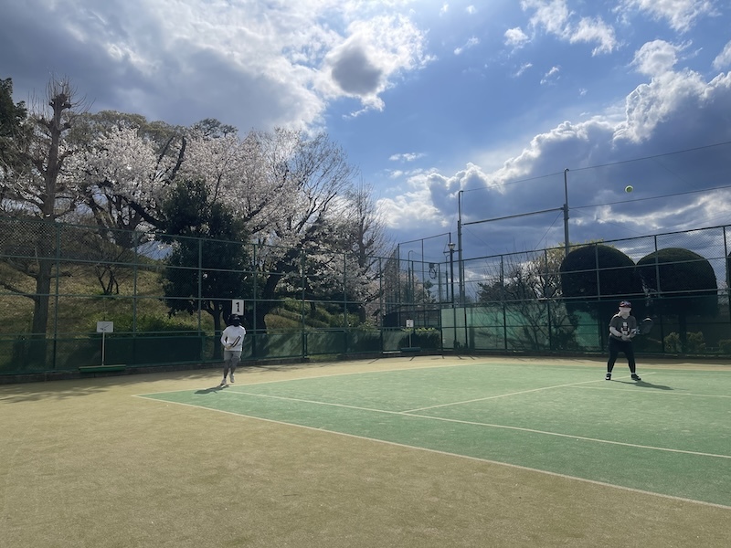 特に目黒川横の目黒区のテニスコートは晴天、桜と最高のコンディション。