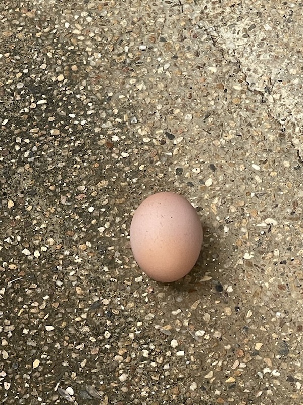 一瞬、夢遊病のように卵を持って私が置いたのか?!とも思いましたが、どうも鶏がそこに産んだようです。たぶん、、、